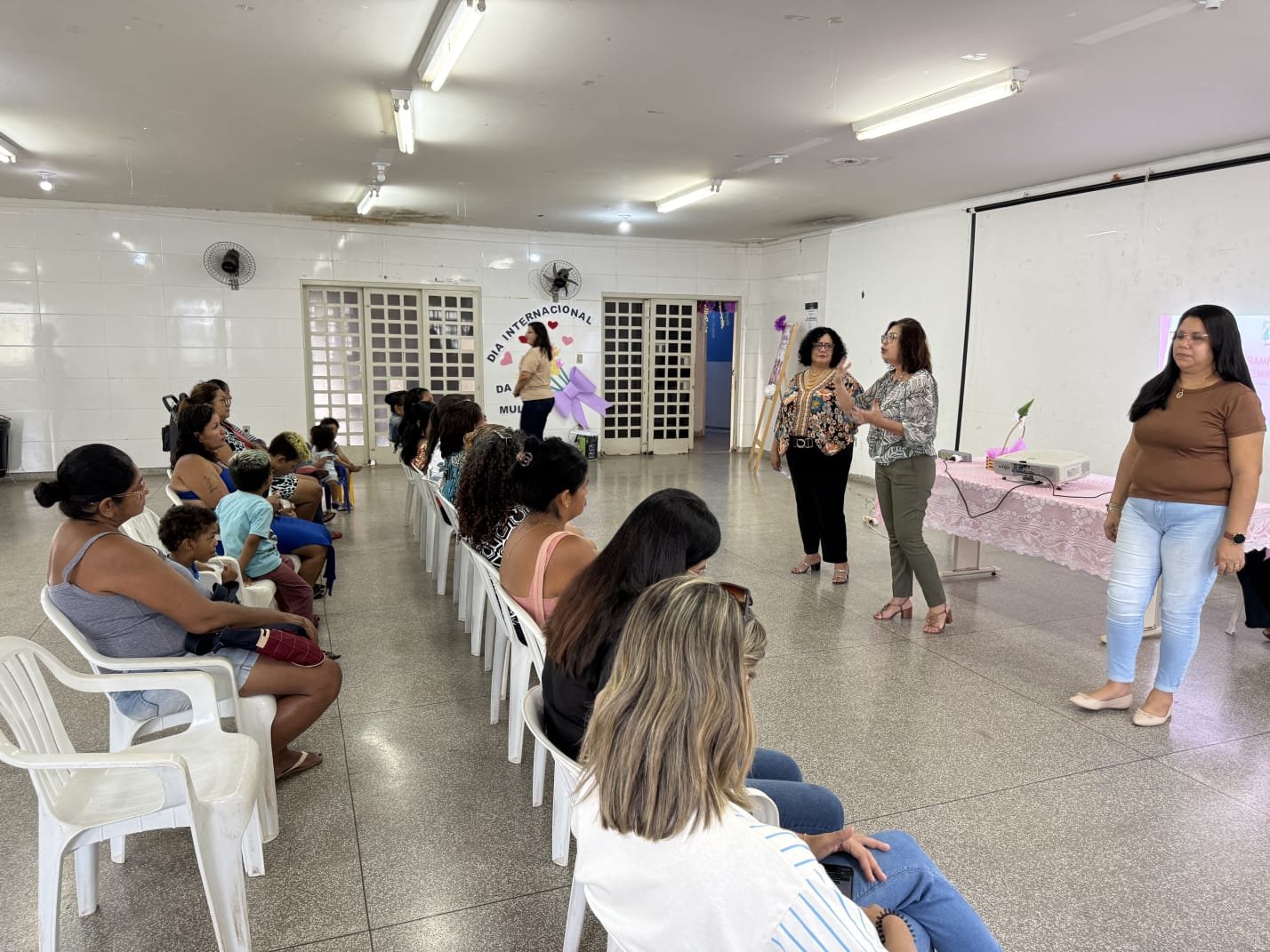 Durante a atividade, foram abordados aspectos relacionados ao papel da mulher na sociedade, à valorização da autoestima e à importância de iniciativas que estimulem o protagonismo feminino em diferentes espaços da comunidade.
