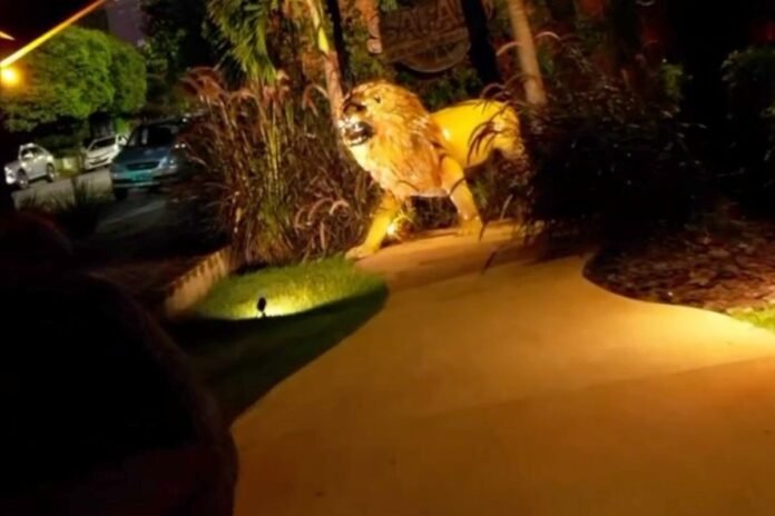 Estátua de leão é furtada e hamburgueria oferece recompensa em MS